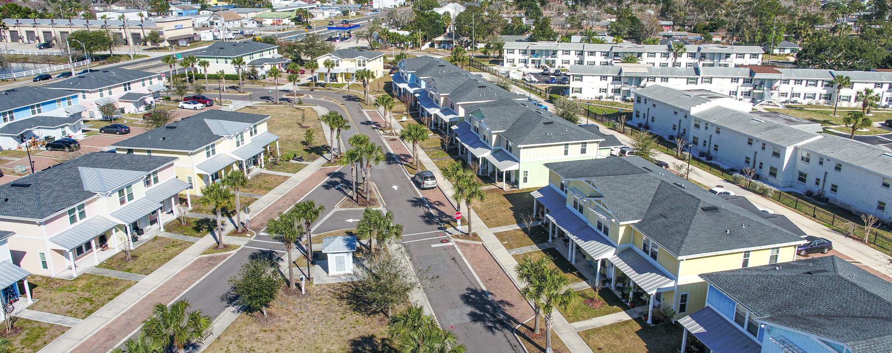 A community center, scenic corridor landscaping, community park and common open space are some of the high-profile amenities. The homes are arranged in a Traditional Neighborhood Design with rear lane/alley access and buildings fronting the scenic corridor or the main loop road surrounding the community park. All homes feature front porches and sidewalks that lead through the neighborhood and to Mayport Road, creating a walkable community.